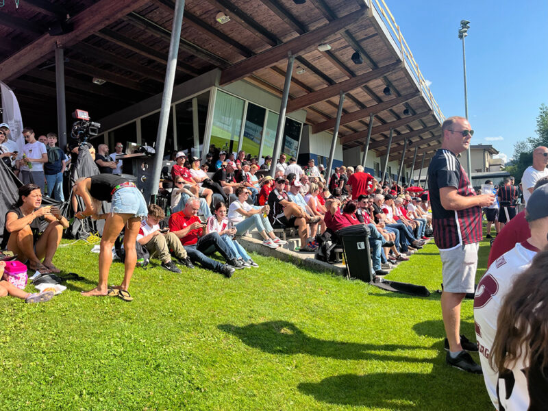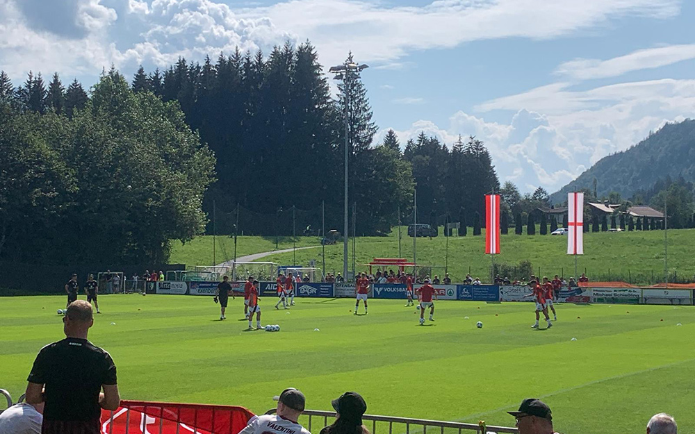 Alles in Allem haben sich meine Eindrücke vom Training Freitags bestätigt. Fussballerisch richtig gut, mit hoher Intensität, eine gute Einheit ohne offensichtlichen Stinkstiefel und ein ruhiger aber bestimmt agierender Trainer, der absolut weiß was er will. Wie sagte ein einheimischer Zuschauer ” Das ist das, was er auch in Altach wollte, nur die Spieler dazu hatte er nicht”