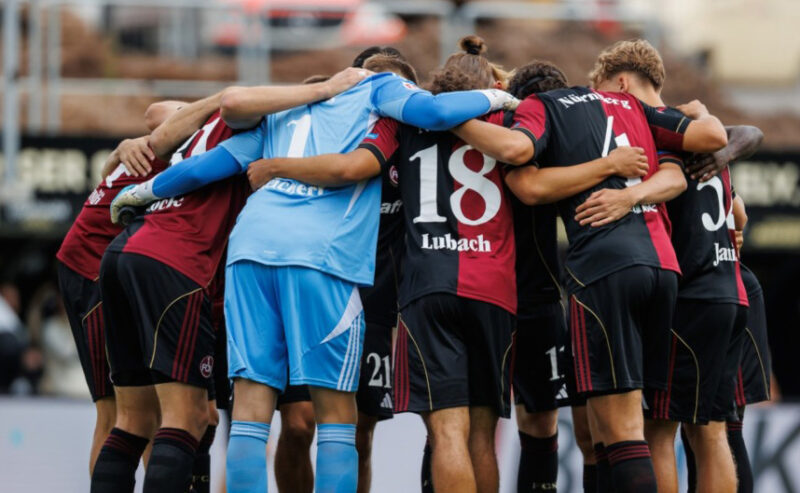 Die Einschätzung zum Club von Kohfeldt gebe ich mal ungekürzt wieder, weil ich den Blick von außen immer sehr interessant finde: „Auf uns wartet ein großer Club – mit großer Tradition und einer leidenschaftlichen Fanbase. Es ist immer schön, in Nürnberg zu spielen, weil man sofort spürt, wie tief der Club in der Stadt verwurzelt ist und was er den Menschen dort bedeutet. Miroslav Klose verfolgt mit seiner Mannschaft einen spielerischen Ansatz, der sich bereits in der vergangenen Saison abgezeichnet hat. Sie agieren meist nicht positionsstarr, sondern schaffen durch den Ballbesitz gezielte Abhängigkeiten zueinander. Das Spiel ist geprägt von vielen Doppelpässen, Positionswechseln und Rotationen – eingebettet in eine Struktur mit klaren Ankerpunkten. Vorne spielt mit Stepanov ein sehr wuchtiger Stürmer, der als Zielspieler dient. Biron kenne ich noch aus der belgischen Liga – ein dribbelstarker Spieler mit viel Tempo. In der Defensive bringt Robin Knoche als erfahrener Innenverteidiger Stabilität, und auf der Zehnerposition agiert mit Justvan einer der kreativsten Spieler der Liga. Nürnberg hat ein starkes Gerüst mit absolut gehobenem Zweitliganiveau, um das sich viele talentierte, junge Spieler gruppieren. Sie spielen selbstbewusst und mit klaren spielerischen Elementen nach vorne. Gegen den Ball scheuen sie sich aber auch nicht, im tieferen Block zu verteidigen.”