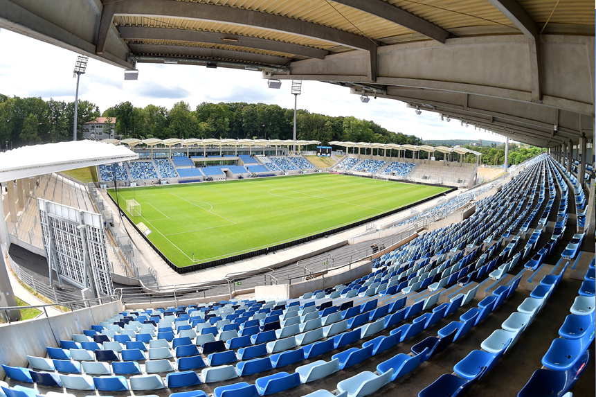 So, das war die erste brenzlig Situation für Saarbrücken. Gut gehalten von Mathenia. Jetzt kommt das Stadion. Nachtigall ick hör dir trapsen….