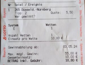 Nachtrag: Damit uns keiner nachsagen kann wir Franken wären “Elendiche Bessimisdn” hier der Beweis. Teo hat auf den Glubb gesetzt!