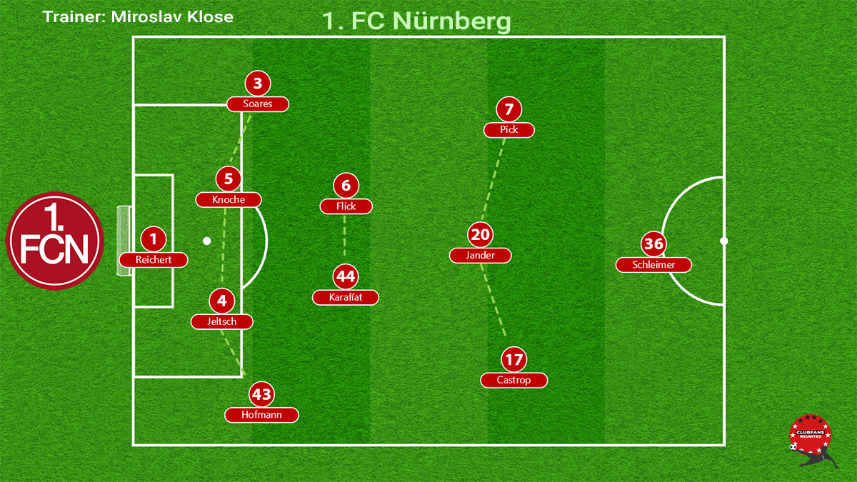 Neben der Intensität ist aber noch ein Fortschritt erkennbar. Das Passspiel ist verbessert, die Mannschaft erscheint stärker am Ball. Und das passt auch zur neuen Spielweise, die mehr durch die Mitte kommt und nicht nur auf die (vermeintliche) Flügelzange setzt wie bei Fiel. Und noch eine Kleinigkeit. Mathenia hat wieder einen guten Eindruck hinterlassen. Das dürfte damit zusammen hängen, dass der Torwart nicht mehr zwingend kurz eröffnen muss, lange Bälle scheinen wieder erlaubt, hat man häufiger gesehen. Und warum? Weil man sich die Balleroberung weiter vorn zutraut, anders als scheinbar unter Fiel, der immer von hinten heraus Spielkontrolle wollte.