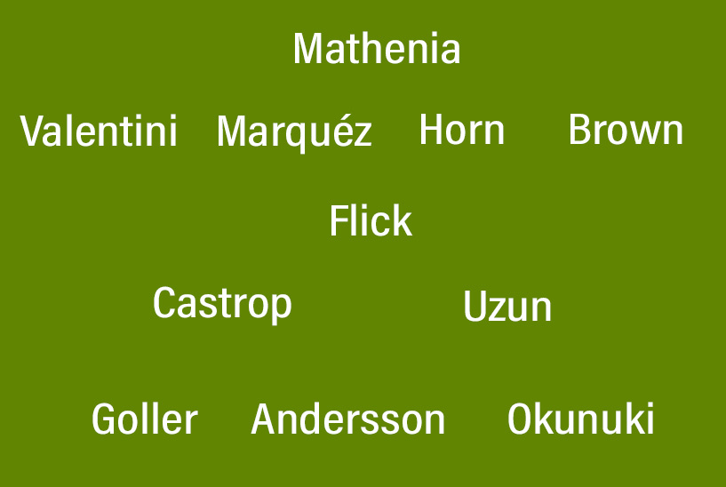 Brown, Castrop, Flick, Okunuki und Goller dürften ohnehin gesetzt sein.