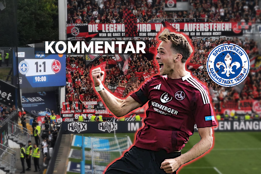 Man muß das Spiel nicht mehr im Detail nacherzählen und wenn man durch die Analysen blättert findet man auch keine zwei Meinungen: Schmeichelhafter Punktgewinn. Lieberknecht glaubte, die Schwächen des Clubs ausgemacht zu haben, und völlig „überraschend“ begann Darmstadt daher mit Alarm und extrem frühem Anlaufen, was den Nürnberger Spielaufbau über eine halbe Stunde auf Null reduzierte. So gut Reichert war und so aufopferungsvoll vor allem Knoche, Jeltsch und Castrop (der zwischenzeitlich bei einer Grätsche auch zum Stilmittel „Rasen kaputtreten“ griff) das Zentrum verteidigten, mit einem längeren Diagonalpaß wurde mehrfach die eben noch „ballferne“ Außenseite komplett aufgerissen, meist die von Soares.