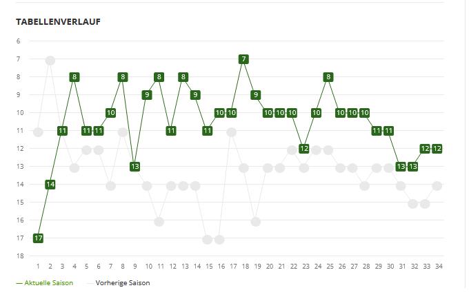 Erwähnenswert auch der Wechsel bei der Nr.1 im Tor weil Mathenia nach einer Verletzungspause nicht mehr zurückfand auf seinen gewohnten Platz als Stammtorhüter, den er an den soliden Carl Klaus über die komplette Rückrunde verlor.